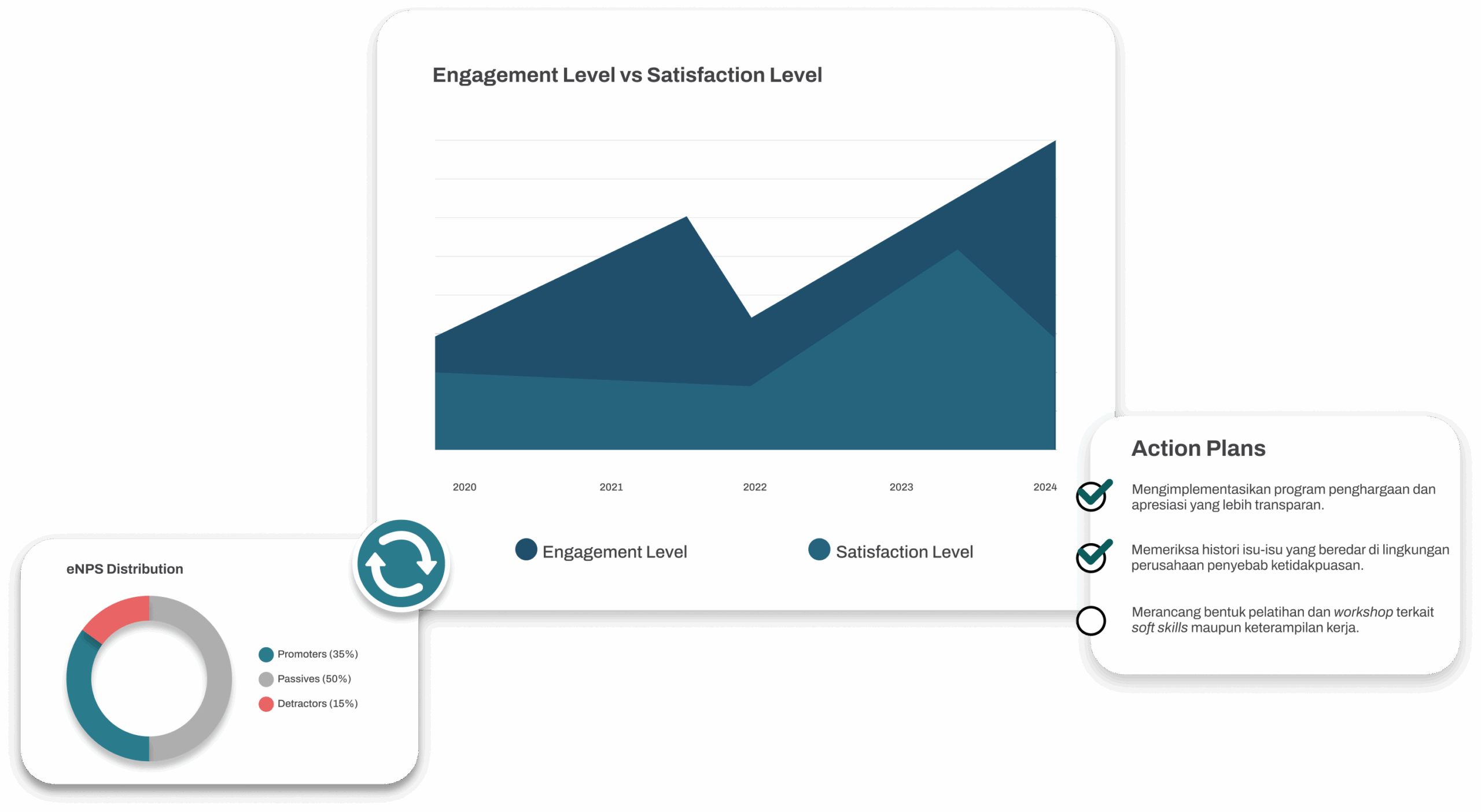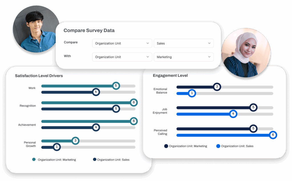 Get tailored recommendations based on survey results. We help you design strategies to improve engagement and employee satisfaction.